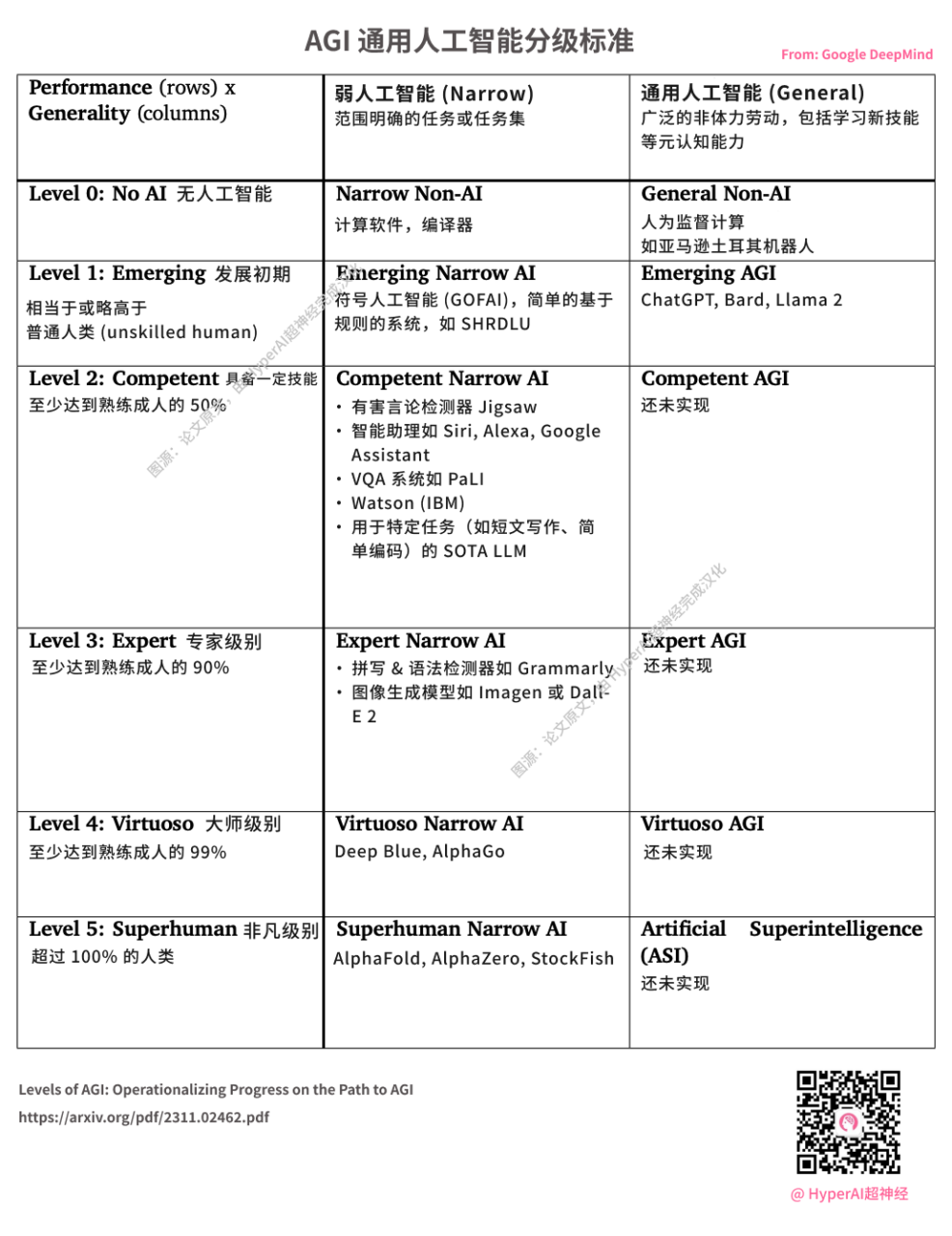 DeepMind 发布 AGI 分级标准OpenAI 推出的 ChatGPT 被视为 L1 级别 AGI图源:论文原文,由 HyperAI超神经完成汉化
