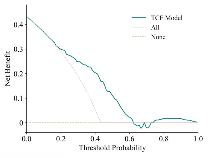 TCF 模型在内部验证集上的 DCA 结果