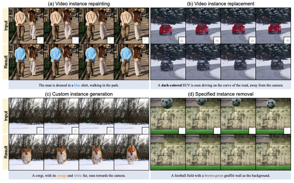 VIRES 一种结合草图与文本引导的视频实例重绘方法,支持对视频主体的重绘、替换、生成与移除等多种编辑操作。该方法利用文本生成视频模型的先验知识,确保时间上的一致性。实验结果表明,VIRES 在视频质量、时间一致性、条件对齐和用户评分等多方面均是优异表现。