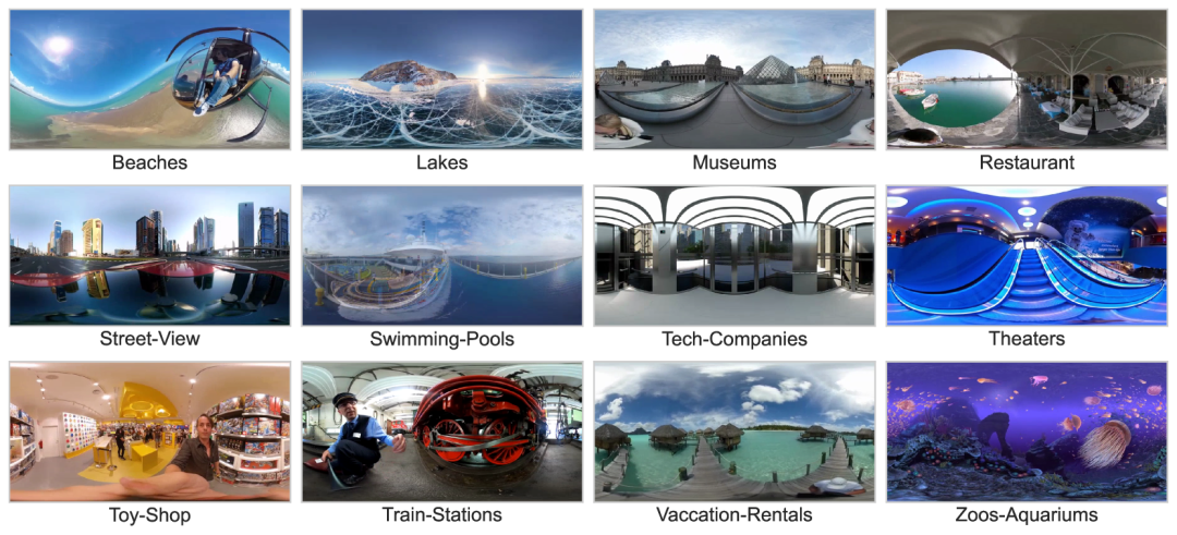 缺乏配对数据集一直是全景视频生成模型性能提升的主要阻碍之一。为解决数据稀缺的问题,研究团队构建了一个语义均衡、场景多样且高质量的大规模全景视频数据集 PanoVid。该数据集汇聚了现有的多个全景视频资源,包括 360-1M、360+x、Imagine360、WEB360、Panonut360、Miraikan 360-degree Video Dataset,以及公开的沉浸式 VR 视频数据集等。