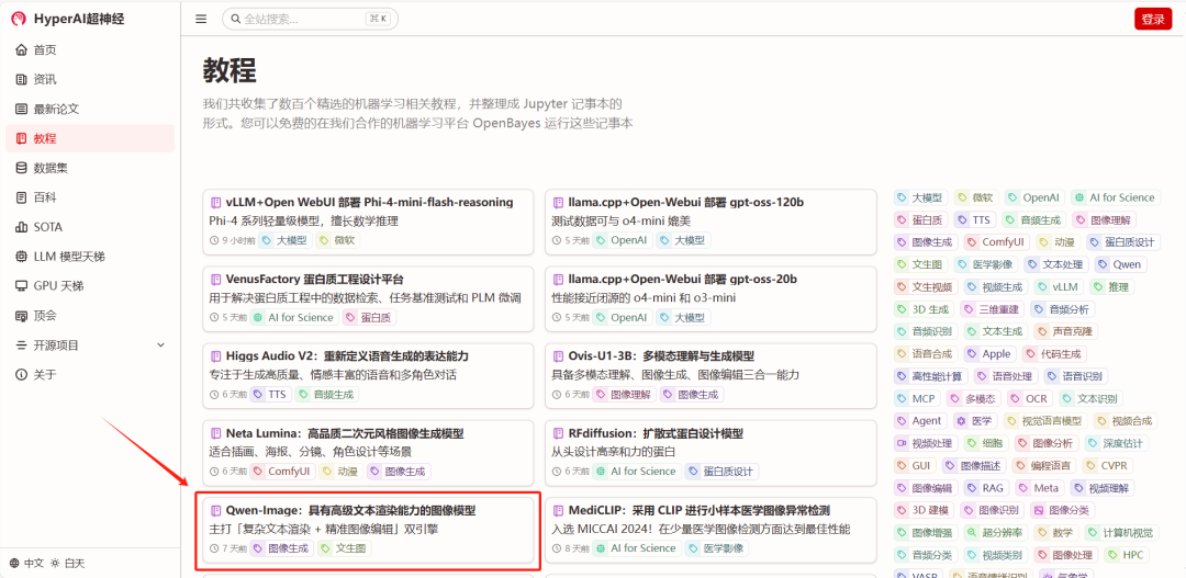 「Qwen-Image:具有高级文本渲染能力的图像模型」现已上线 HyperAI超神经官网(hyper.ai)的「教程」板块,立即部署,专业效果轻松上手!