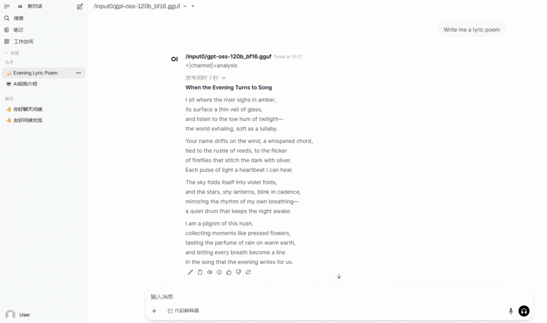 gpt-oss-20b 是由 OpenAI 推出的开源推理模型,适合低延迟、本地或专业垂直领域使用,可在消费级硬件(如笔记本、边缘设备等)流畅运行,表现直媲美 o3‑mini。