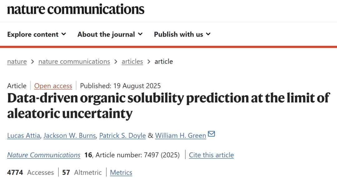 相关研究成果以「Data-driven organic solubility prediction at the limit of aleatoric uncertainty」为题,发表于 Nature Communication 。