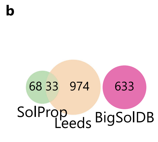 该研究的核心数据来源为 BigSolDB,该数据库系统性收录了有机固体在多种有机溶剂及不同温度条件下、接近沉淀极限的溶解度数据,为通用预测模型的训练提供了关键支撑。