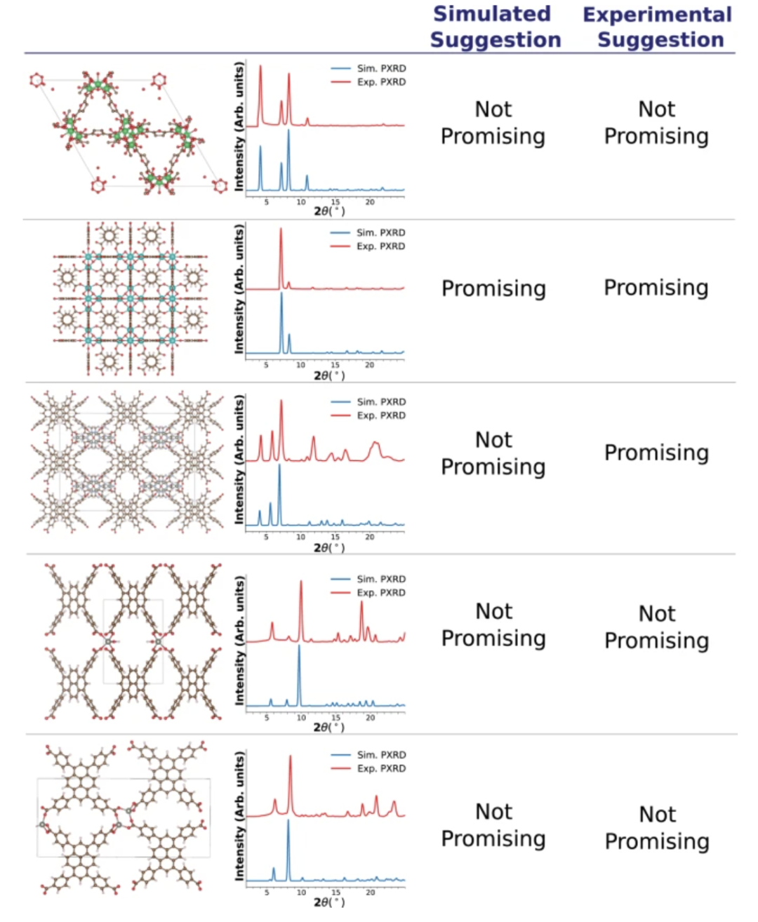 下图展示了模型推荐结果,比较了模拟 PXRD 图谱和实验 PXRD 图谱的差异: