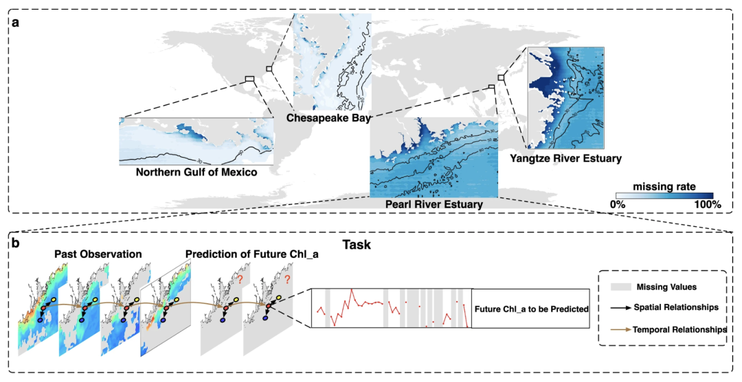 来自陆地的营养输入和活跃的水动力学,使近海成为了世界上生产力极为丰富的海洋生态系统,同时也带来了严重的富营养化和缺氧等潜在风险,预测叶绿素 a(Chl_a)的时空分布则是诊断沿海生态系统健康状况的重要手段。