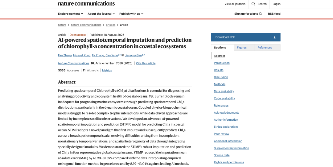 相关研究成果以「Spatiotemporal Imputation and Prediction Model」为题,发表于 Nature Communications。