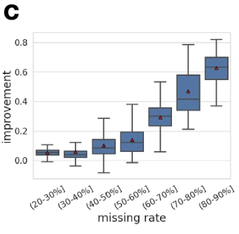 插补带来的性能提升与缺失数据率的关系