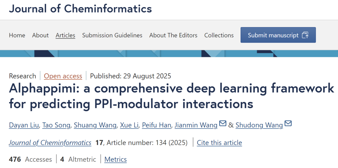 相关研究成果以「Alphappimi: a comprehensive deep learning framework for predicting PPI-modulator interactions」为题,发表于 Journal of Cheminformatics。