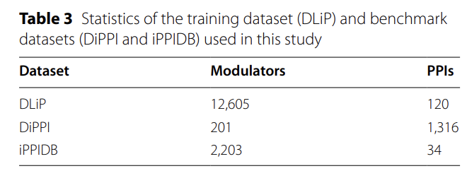本研究中使用的训练数据集(DLiP)和测试数据集(DiPPI 和 iPPIDB)