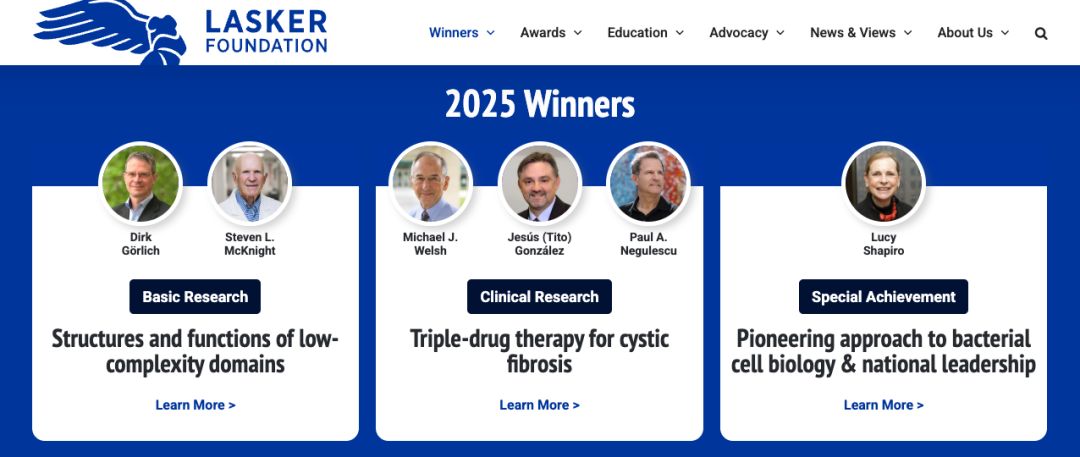 2025 年拉斯克奖(Lasker Awards )获奖名单