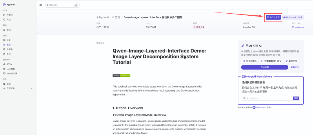 目前,「Qwen Image Layered Interface 自动拆分多个图层」已上线至 HyperAI超神经官网(hyper.ai)的教程板块,一键部署即可在线体验图像分层编辑。