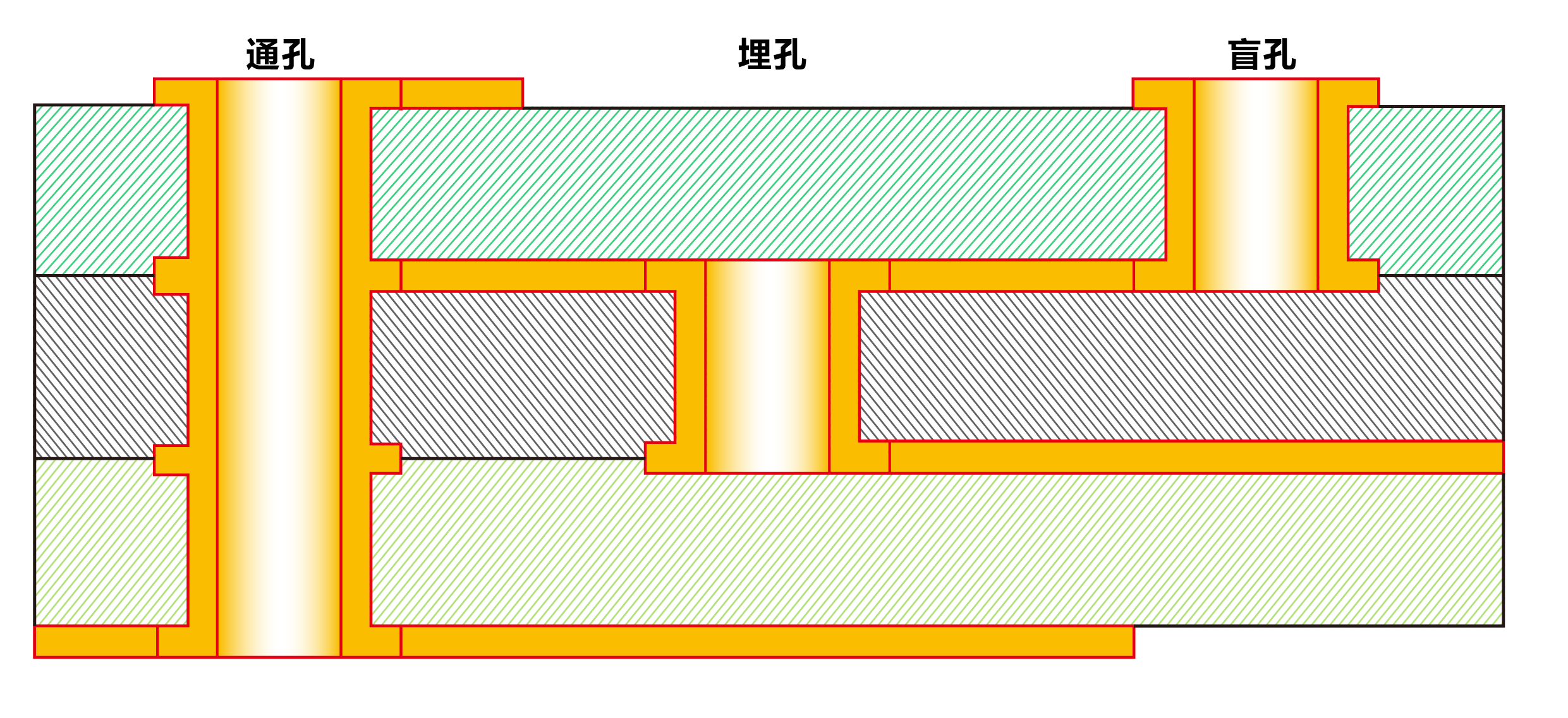 PCB在制造过程中通常会采用过孔方式连接印制导线来达成电气性能提升、材料成本降低的目标,其设计方式包括通孔、盲孔和埋孔。相对于通孔,采用盲孔或埋孔方式可有效提升多层板的密度,减少板层数和板面尺寸,适用于高速电路设计。