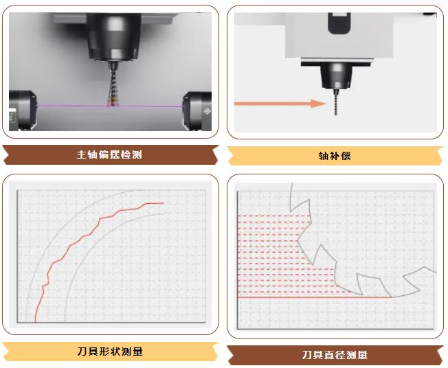 使用连续的压缩气体通过一个特别设计的微小激光钻孔,气流高速从喷嘴喷出,可清除刀具表面的冷却液和加工碎屑,保证刀具检测精度。