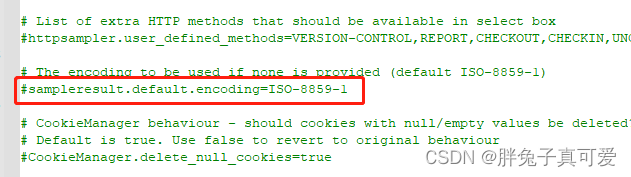 仍然是找到jmeter.properties这个文件,找到#sampleresult.default.encoding=ISO-8859-1这行,将ISO-8859-1改为UTF-8,同时去掉行前的#号,保存文件。