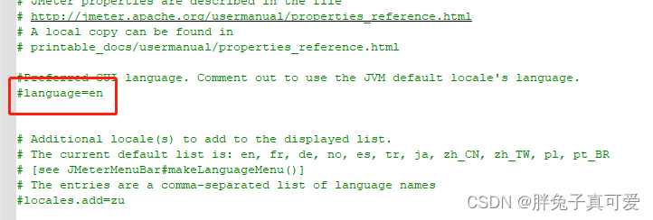 第二种,在JMeter的安装目录的bin目录下,找到jmeter.properties这个文件,打开它,找到language=en这行,改成language=zh_CN,同时把行前的#去掉,保存文件后重启JMeter,就能看到界面变为中文了。