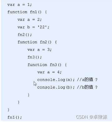 根据在内部函数可以访问外部函数变量的这种机制, 用链式查找决定了 哪些数据能被内部函数访问, 就称作作用域链.