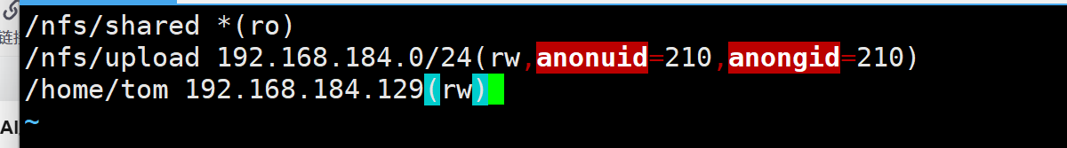 2、开放/nfs/upload目录,为192.168.xxx.0/24网段主机可以上传目录,