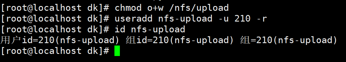 所有用户及所属的组映射为nfs-upload,UID GID均为210