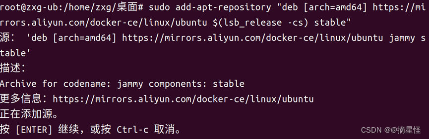 sudo add-apt-repository "deb [arch=amd64] https://mirrors.aliyun.com/docker-ce/linux/ubuntu $(lsb_release -cs) stable"