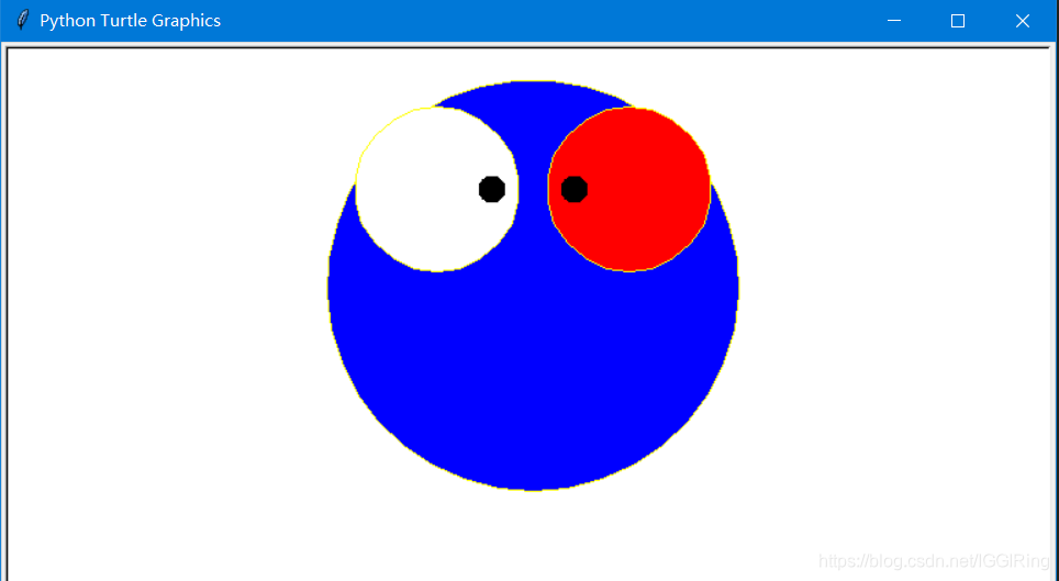 import turtle #定义变量设置眼睛坐标起点 x = 70 y = 160 #定义变量设置眼球坐标起点 x1 = 30 y1 = 220 eyesize = 60 #定义眼睛半径 facesize = 150 #定义脸的半径 eyesize1 = 20 #定义眼球的半径 turtle.speed(0) #画笔速度设为最快 eyescolor = 'black' #定义眼球颜色 turtle.pencolor('yellow') #定义画笔颜色 facecolor = 'blue' #定义脸部颜色 #画脸 turtle.fillcolor(facecolor) #给脸部填充颜色 turtle.begin_fill() #开始填充 turtle.circle(facesize) turtle.end_fill() #结束填充 #画眼睛 turtle.penup() #turtle.fillcolor('white') # 图片未封闭填充颜色,将自动首尾相连形成封闭图形 #turtle.begin_fill() turtle.goto(-x,y) turtle.pendown() turtle.fillcolor('white') #眼睛颜色定义 turtle.begin_fill() #眼睛颜色开始填充 turtle.circle(eyesize) turtle.end_fill() #用于测试不同结点填充颜色 turtle.penup() turtle.goto(x,y) turtle.pendown() turtle.fillcolor('red') #用于测试不同结点填充颜色 turtle.begin_fill() #用于测试不同结点填充颜色 turtle.circle(eyesize) turtle.end_fill() #眼睛颜色结束填充 #画眼球 turtle.penup() turtle.goto(-x1,y1) turtle.pendown() turtle.dot(eyesize1,eyescolor) turtle.penup() turtle.goto(x1,y1) turtle.pendown() turtle.dot(eyesize1,eyescolor) #隐藏画笔 turtle.hideturtle() turtle.done() #停止绘制,但不关闭窗口 #画完后不关闭页面 #turtle.mainloop()
