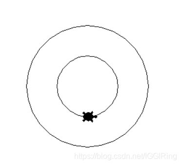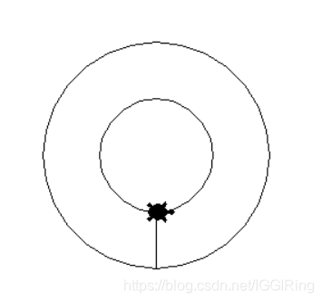 import turtle turtle.shape('turtle') turtle.circle(100) turtle.goto(0,50) turtle.circle(50)import turtle t1=turtle.Pen() t2=turtle.Pen() t1.goto(0,100) print(t1.distance(t2)) turtle.done() >>>100.0