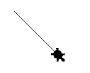 import turtle turtle.shape('turtle') turtle.left(45) turtle.forward(100)
