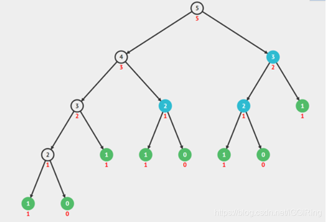我们把工作原理流程图简化成这种二叉树的模式,我们将通过树状结构来了解fibo(5)函数的执行流程。