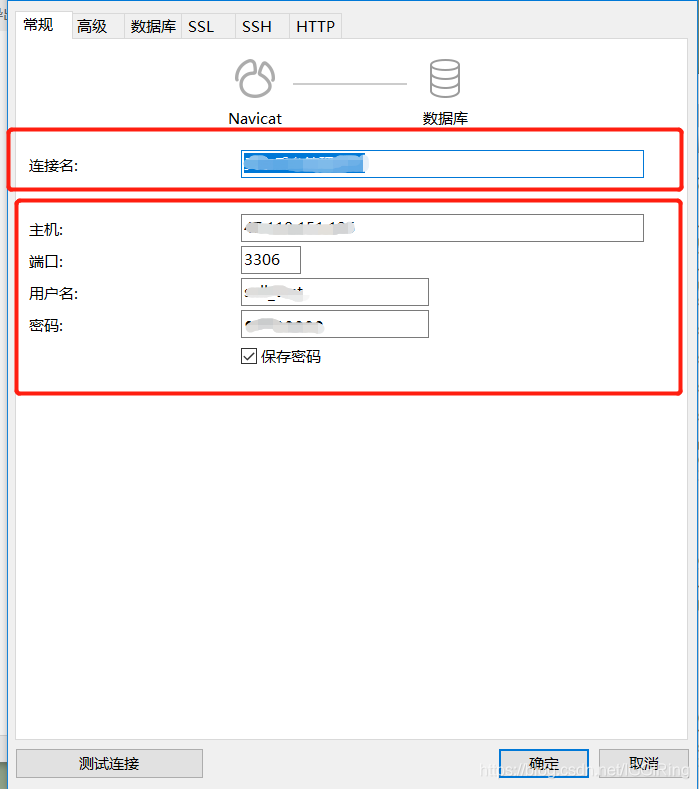 Navicat:连接名自己取,打马赛克的内容开发人员都会给你的。