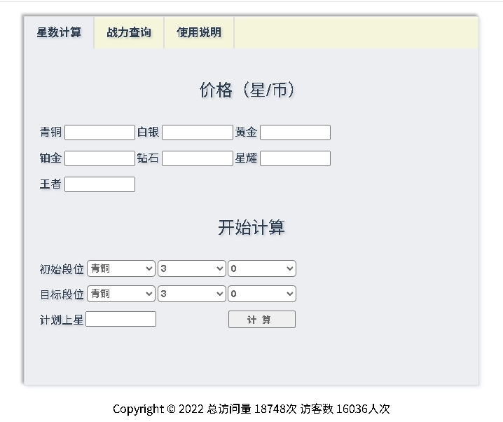 1、星数计算;主要用于快速计算段位之间的星数差距,帮助职业代练师快速计算费用;