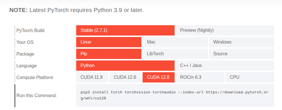 pip3 install torch torchvision torchaudio --index-url https://download.pytorch.org/whl/cu128