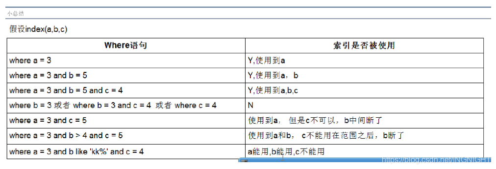 最佳左前缀法则:如果索引了多列,要遵循最左前缀法则,指的是从索引的最左前列开始并且不跳过索引中的列