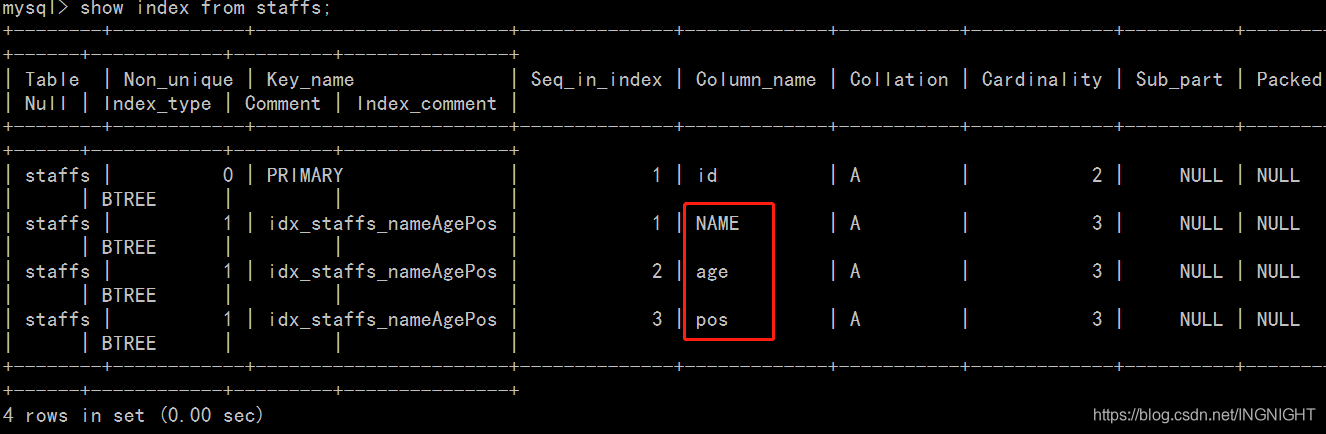 alter table staffs add index idx_staffs_nameAgePos(name,age,pos);
