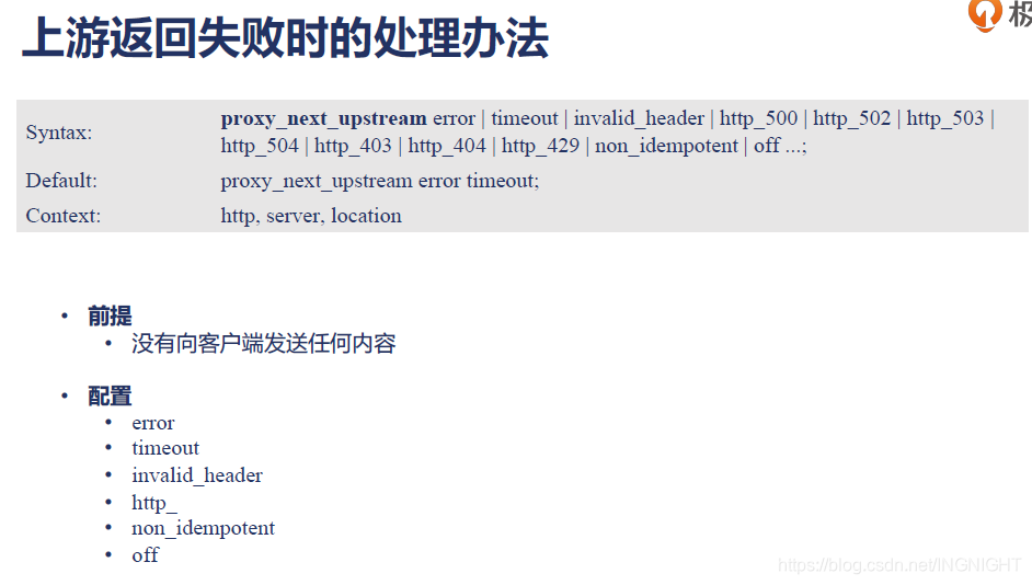 2.proxy_next_upstream http_500,认为upserver返回500为错误,则会重新选择