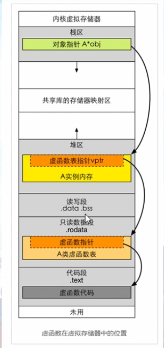 //可以看出虚函数表类似于类的静态成员,对象的首地址位置保存了虚函数表的地址