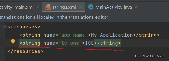 - 控件命名。这里命名为tv_one。可以用于java代码获取此text_view。