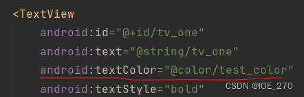 正式开发中,颜色和背景属性应该写在res/values/color.xml下,内容(text)应该写在string.xml下。例如:
