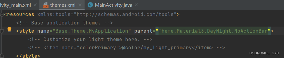 *如果发现新建的项目有bar(就顶上那行标题),可以把此处修改为NoActionBar