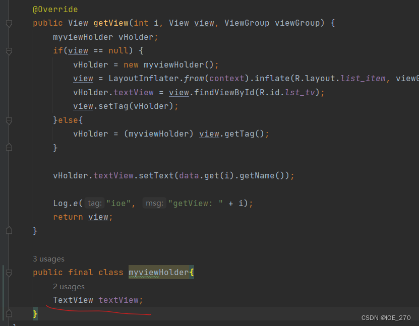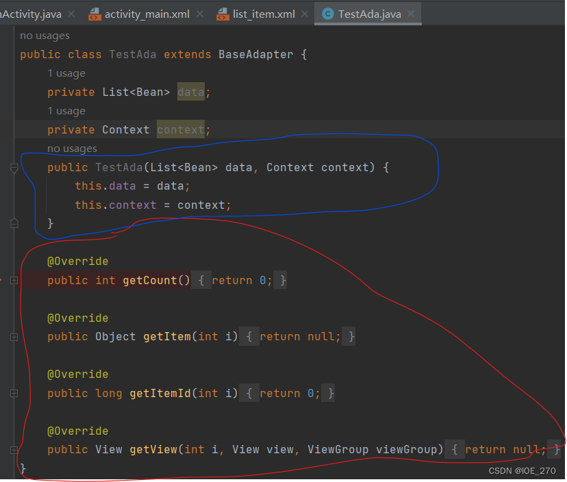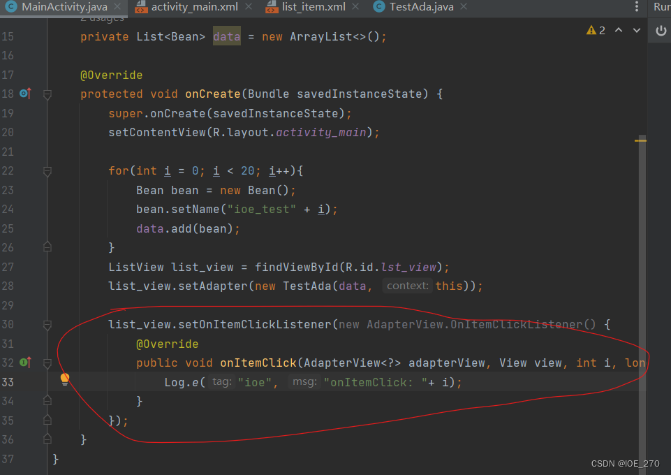 *红线部分和listitem中的控件个数有关,如果不止一个testview,就还需要多定义一个。