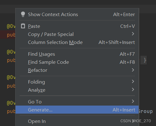 新建类,extends后右键可生成下图红圈内容