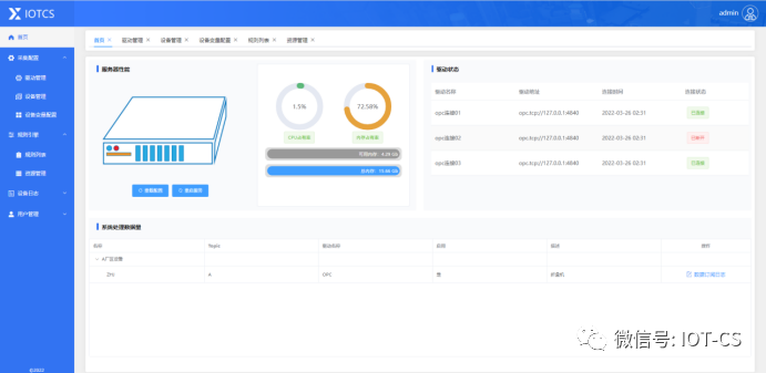 IOTCS是一款基于.Net Core3.1的开源工业物联网网关,解决设备数据统一接入问题,支持多种PLC协议,提供跨平台、资源管理和规则配置功能。用户可通过Web UI进行配置管理,结合云端产品,应用于智能制造、新能源等行业。
