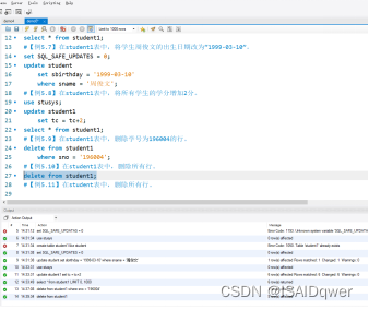 #【例5.11】在student表中,删除所有行。
