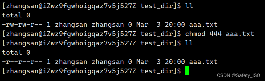 指令:chmod 444 abcd.txt