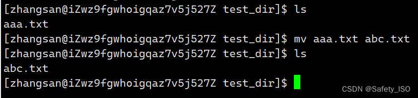 指令:mv 文件名 文件名 ,代表直接更改文件名。