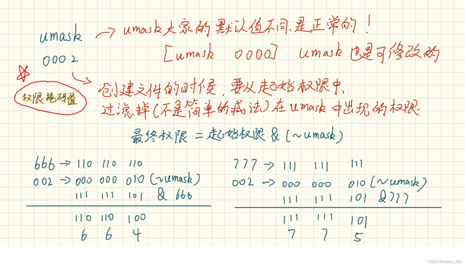 通过umask权限反码值,得到最终的权限。