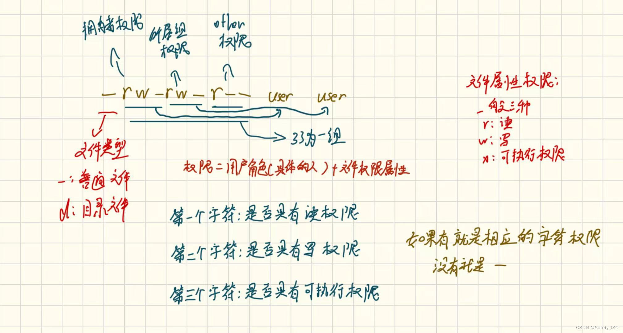 我们由此可以发现 权限 = 用户角色(具体的人)+ 文件权限属性 ,因为每个角色对应一层权限。