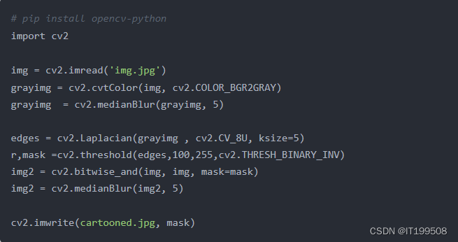这个简单的高级脚本会将你的照片转换为 Cartonize 格式。查看下面的示例代码并尝试一下。