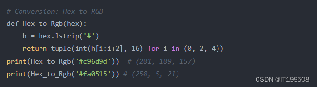 该脚本将简单地将 Hex 转换为 RGB。查看下面的示例代码。