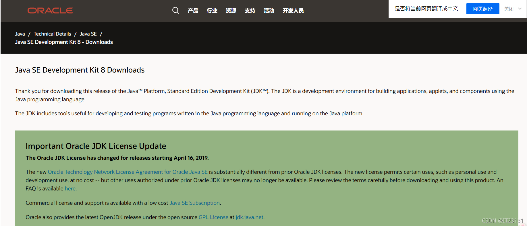 首先去Oracle官网下载我们需要的jdk8的安装包